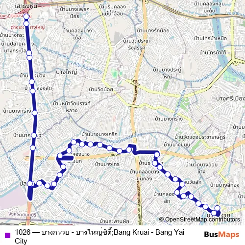 See why over 2 million users trust and consider busmaps.com as the best public transport website. busmaps gives you Bang Kruai Buses suggested routes, real-time bus tracker, line route maps in Bang Kruai, and helps to find the closest 1026 bus stops near you. No internet available? Download an offline PDF map and bus schedule for the 1026 bus to take on your trip.