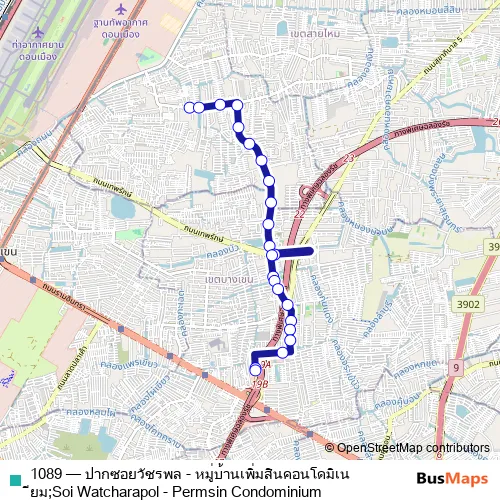 Click here to view the nearest 1089 - ปากซอยวัชรพล - หมู่บ้านเพิ่มสินคอนโดมิเนียม;Soi Watcharapol - Permsin Condominium bus stop.