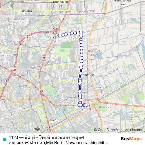 Click here to view the nearest 1123 - มีนบุรี - โรงเรียนนวมินทราชินูทิศ เบญจมราชาลัย (ไป);Min Buri - Nawamintrachinuthit Benjamarachalai School bus stop.