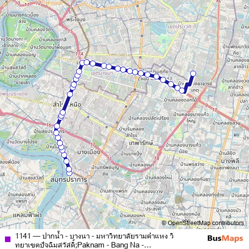 Bus 1141 - ปากน้ำ - บางนา - มหาวิทยาลัยรามคำแหง วิทยาเขตปัจฉิมสวัสดิ์;Paknam - Bang Na - Ramkhamhaeng University Bang Na Campus Schedule in Bang Na