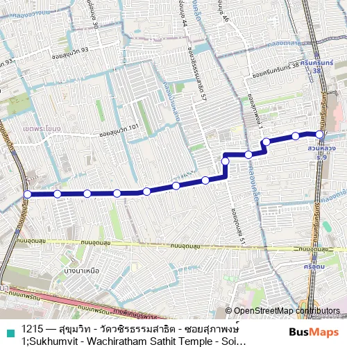 Click here to view the nearest 1215 - สุขุมวิท - วัดวชิรธรรมสาธิต - ซอยสุภาพงษ์ 1;Sukhumvit - Wachiratham Sathit Temple - Soi Suphaphong bus stop.