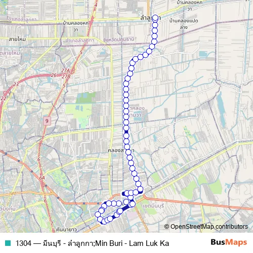 See why over 2 million users trust and consider busmaps.com as the best public transport website. busmaps gives you Min Buri Buses suggested routes, real-time bus tracker, line route maps in Min Buri, and helps to find the closest 1304 bus stops near you. No internet available? Download an offline PDF map and bus schedule for the 1304 bus to take on your trip.