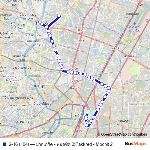 Bus 2-16 (104) - ปากเกร็ด - หมอชิต 2;Pakkred - Mochit 2 in Mueang Nonthaburi: Stops & Timetable