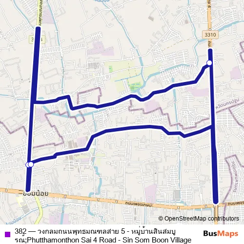 Bus 382 - วงกลมถนนพุทธมณฑลสาย 5 - หมู่บ้านสินสมบูรณ์;Phutthamonthon Sai 4 Road - Sin Som Boon Village: Full Schedule in Nong Khaem