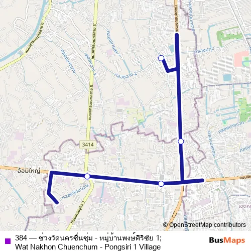 Bus 384 - ช่วงวัดนครชื่นชุ่ม - หมู่บ้านพงษ์ศิริชัย 1;Wat Nakhon Chuenchum - Pongsiri 1 Village: Full Schedule in Nong Khaem