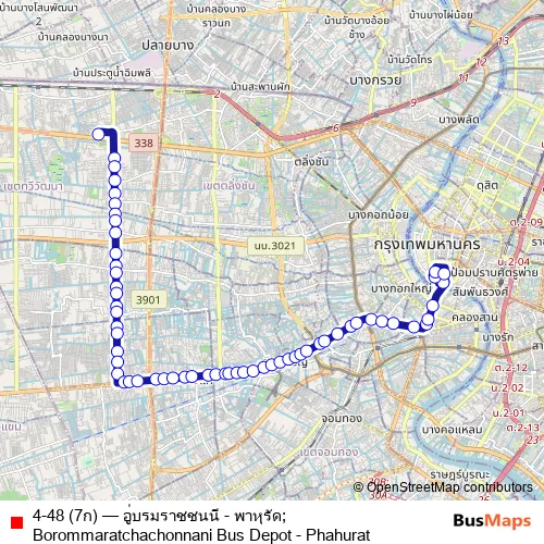 The first stop of the 4-48 (7ก) bus route is อู่บรมราชชนนี;Borommaratchachonnani Bus Depot and the last stop is