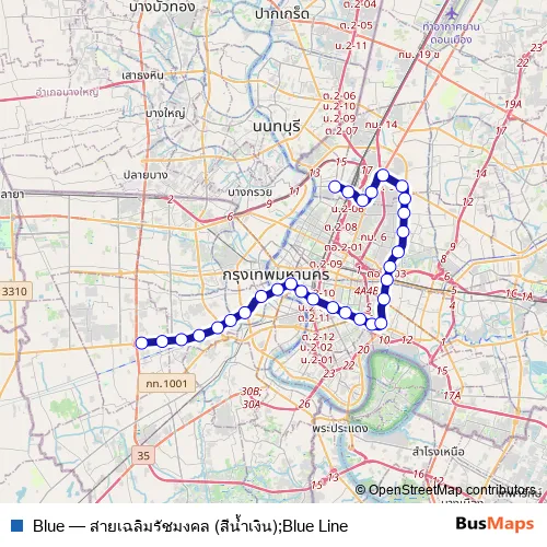 See why over 2 million users trust and consider busmaps.com as the best public transport website. busmaps gives you Bangkok Metro Lines suggested routes, real-time bus tracker, line route maps in Bangkok, and helps to find the closest Blue metro stops near you. No internet available? Download an offline PDF map and bus schedule for the Blue metro to take on your trip.