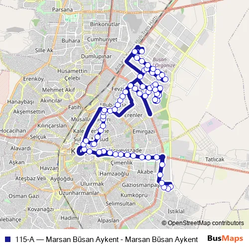 See why over 2 million users trust and consider busmaps.com as the best public transport website. busmaps gives you Konya Buses suggested routes, real-time bus tracker, line route maps in Konya, and helps to find the closest 115-A bus stops near you. No internet available? Download an offline PDF map and bus schedule for the 115-A bus to take on your trip.