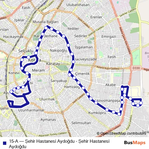 Bus 15-A - Şehir Hastanesi Aydoğdu - Şehir Hastanesi Aydoğdu: Full Schedule in Karatay