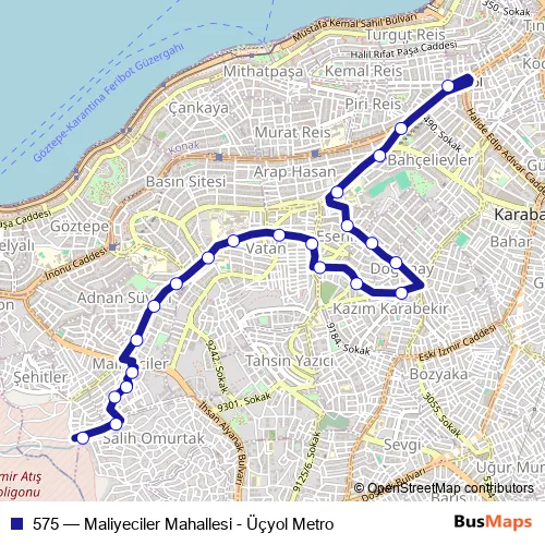 See why over 2 million users trust and consider busmaps.com as the best public transport website. busmaps gives you Izmir Buses suggested routes, real-time bus tracker, line route maps in Izmir, and helps to find the closest 575 bus stops near you. No internet available? Download an offline PDF map and bus schedule for the 575 bus to take on your trip.