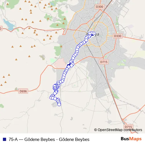 The first stop of the 75-A bus route is Alaaddin Turnike 1 and the last stop is Gödene Hareket Merkezi. 75-A (Gödene Beybes - Gödene Beybes) is operational during everyday.