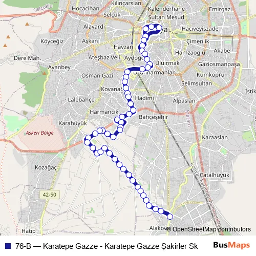 Bus 76-B - Karatepe Gazze - Karatepe Gazze Şakirler Sk in Meram: Stops & Timetable