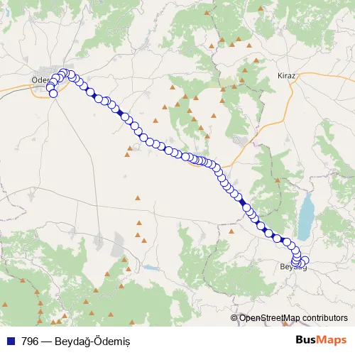 The first stop of the 796 bus route is Beydağ Stadı and the last stop is Ödemiş Son Durak. 796 (Beydağ-Ödemiş) is operational during everyday.