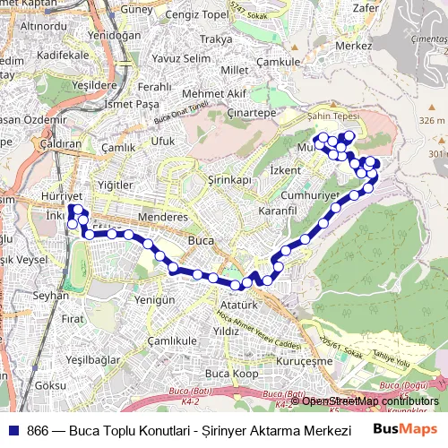 Bus 866 - Buca Toplu Konutlari - Şirinyer Aktarma Merkezi: Full Schedule in Buca