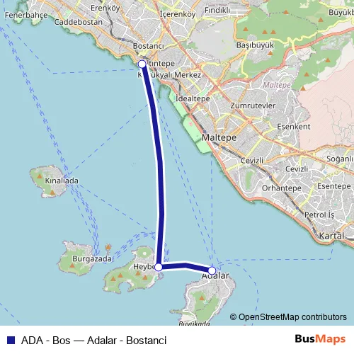 See why over 2 million users trust and consider busmaps.com as the best public transport website. busmaps gives you Adalar Ferries suggested routes, real-time bus tracker, line route maps in Adalar, and helps to find the closest ADA - Bos ferry stops near you. No internet available? Download an offline PDF map and bus schedule for the ADA - Bos ferry to take on your trip.