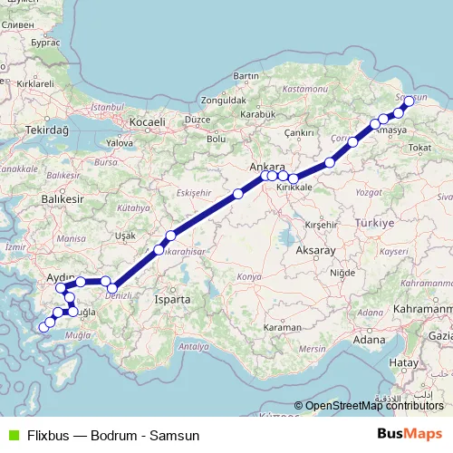 Bus Flixbus - Bodrum - Samsun in Ankara: Stops & Timetable