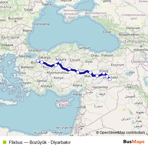 Click here to view the nearest Flixbus - Bozüyük - Diyarbakır bus stop.
