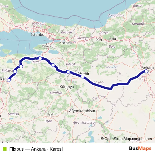 Click here to view the nearest Flixbus - Ankara - Karesi bus stop.