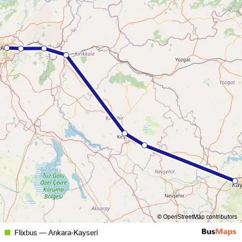 The first stop of the Flixbus bus route is Kayseri, Kayseri bus station and the last stop is Ankara, Ankara bus station. Flixbus (Ankara-Kayseri) is operational during everyday.