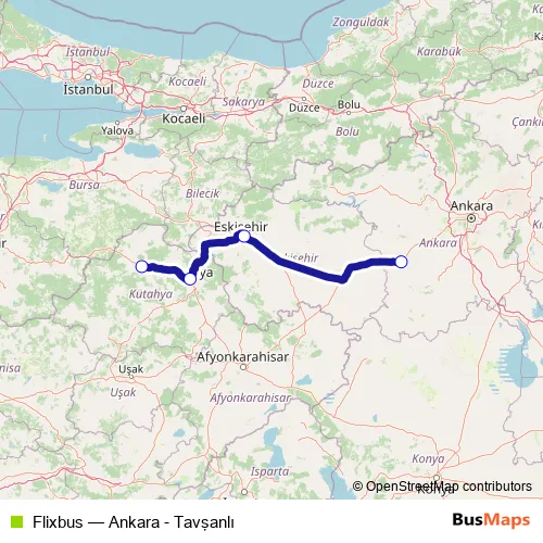 The first stop of the Flixbus bus route is Polatlı Bus stop and the last stop is Tavşanlı Tavsanli Otagar. Flixbus (Ankara - Tavşanlı) is operational during everyday.