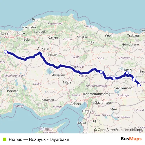 Click here to view the nearest Flixbus - Bozüyük - Diyarbakır bus stop.