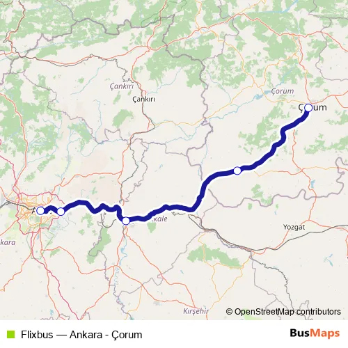 The first stop of the Flixbus bus route is Çorum bus station and the last stop is Ankara bus station. Flixbus (Ankara - Çorum) is operational during everyday.