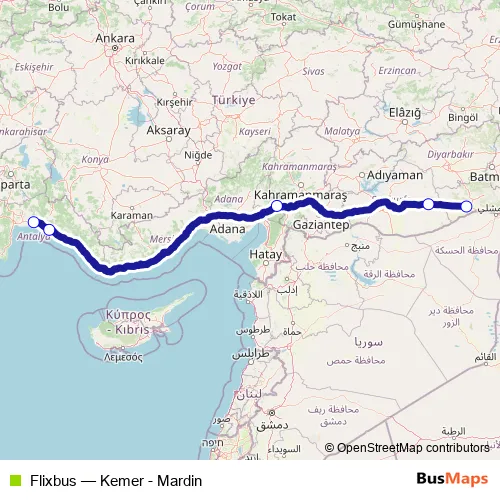 Click here to view the nearest Flixbus - Kemer - Mardin bus stop.
