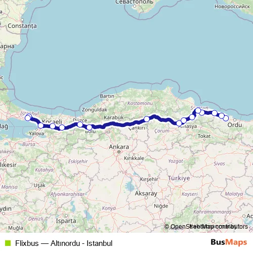 The first stop of the Flixbus bus route is Fatsa Otogar and the last stop is Istanbul Central Bus Station. Flixbus (Altınordu - Istanbul) is operational during everyday.