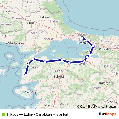 Click here to view the nearest Flixbus - Ezine - Çanakkale - Istanbul bus stop.