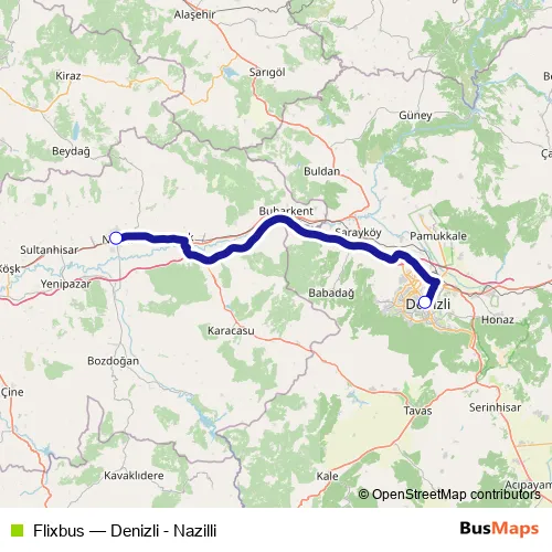 Nazilli Bus Station No:. Flixbus (Denizli - Nazilli) is operational during everyday.