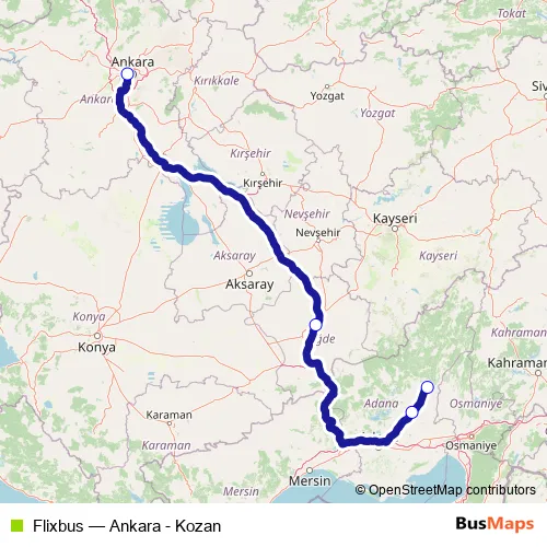 Click here to view the nearest Flixbus - Ankara - Kozan bus stop.