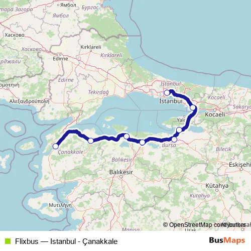 Click here to view the nearest Flixbus - Istanbul - Çanakkale bus stop.