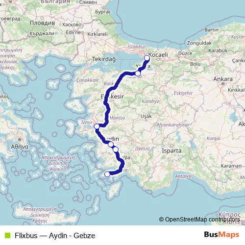 Click here to view the nearest Flixbus - Aydin - Gebze bus stop.