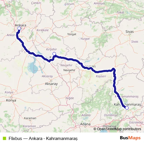 Click here to view the nearest Flixbus - Ankara - Kahramanmaraş bus stop.
