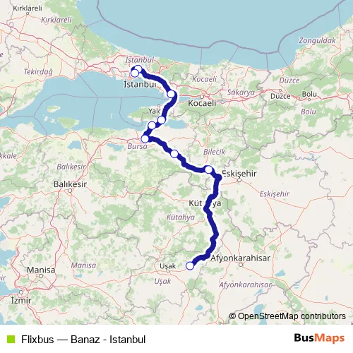 Click here to view the nearest Flixbus - Banaz - Istanbul bus stop.