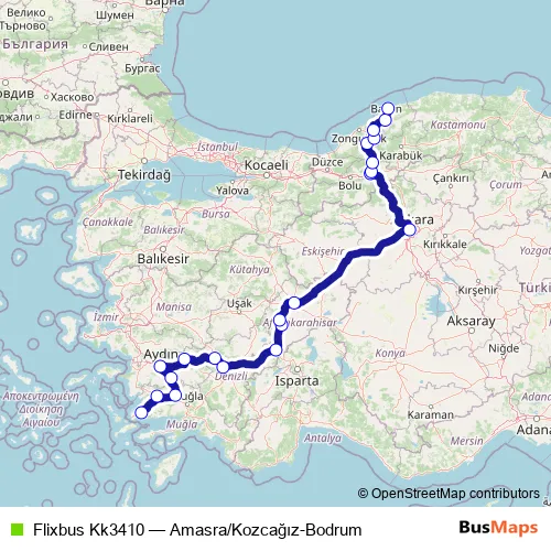 Bus Flixbus Kk3410 - Amasra/Kozcağız-Bodrum Schedule in Yenicaga