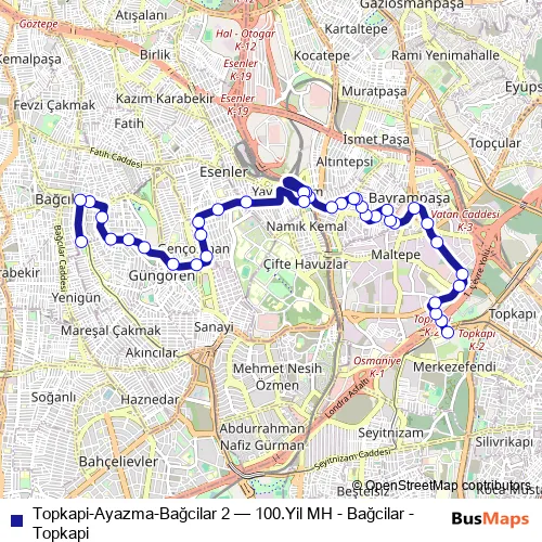 Topkapi-Ayazma-Bağcilar 2 bus Route Map