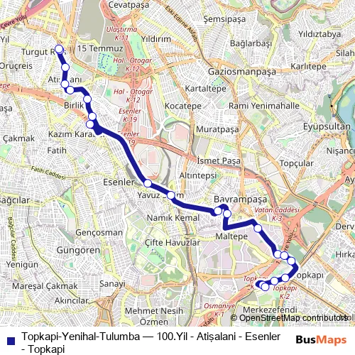 See why over 2 million users trust and consider busmaps.com as the best public transport website. busmaps gives you Istanbul Buses suggested routes, real-time bus tracker, line route maps in Istanbul, and helps to find the closest Topkapi-Yenihal-Tulumba bus stops near you. No internet available? Download an offline PDF map and bus schedule for the Topkapi-Yenihal-Tulumba bus to take on your trip.