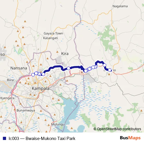 See why over 2 million users trust and consider busmaps.com as the best public transport website. busmaps gives you Kampala Buses suggested routes, real-time bus tracker, line route maps in Kampala, and helps to find the closest Ic003 bus stops near you. No internet available? Download an offline PDF map and bus schedule for the Ic003 bus to take on your trip.