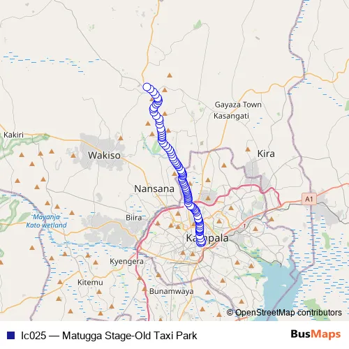 Bus Ic025 - Matugga Stage-Old Taxi Park in Kampala: Stops & Timetable
