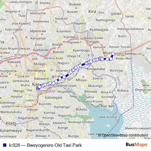 The first stop of the Ic028 bus route is Old Taxi Park (Burton Street) and the last stop is Bweyogerere. Ic028 (Bweyogerere-Old Taxi Park) is operational during everyday.