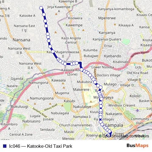 See why over 2 million users trust and consider busmaps.com as the best public transport website. busmaps gives you Kampala Buses suggested routes, real-time bus tracker, line route maps in Kampala, and helps to find the closest Ic046 bus stops near you. No internet available? Download an offline PDF map and bus schedule for the Ic046 bus to take on your trip.