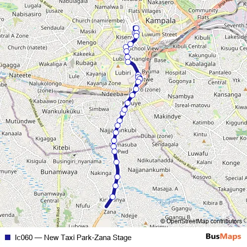 Bus Ic060 - New Taxi Park-Zana Stage in Kampala: Stops & Timetable