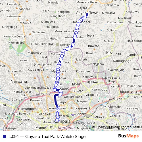 See why over 2 million users trust and consider busmaps.com as the best public transport website. busmaps gives you Kampala Buses suggested routes, real-time bus tracker, line route maps in Kampala, and helps to find the closest Ic094 bus stops near you. No internet available? Download an offline PDF map and bus schedule for the Ic094 bus to take on your trip.