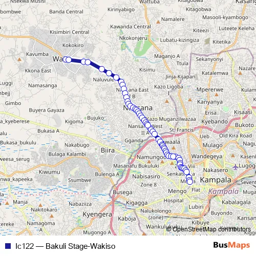 The first stop of the Ic122 bus route is Kobil Petro Station (Wakiso) and the last stop is Hass Petro Station (Bakuli). Ic122 (Bakuli Stage-Wakiso) is operational during everyday.