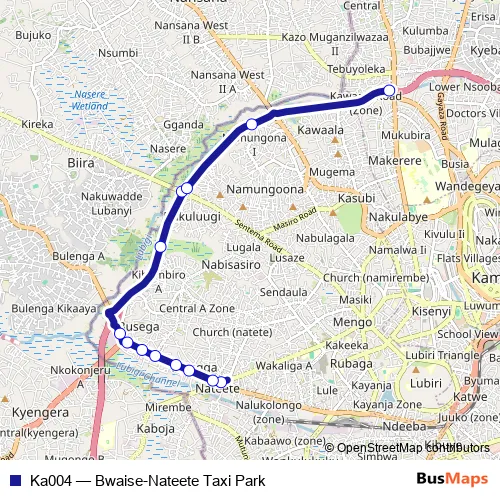 See why over 2 million users trust and consider busmaps.com as the best public transport website. busmaps gives you Kampala Buses suggested routes, real-time bus tracker, line route maps in Kampala, and helps to find the closest Ka004 bus stops near you. No internet available? Download an offline PDF map and bus schedule for the Ka004 bus to take on your trip.