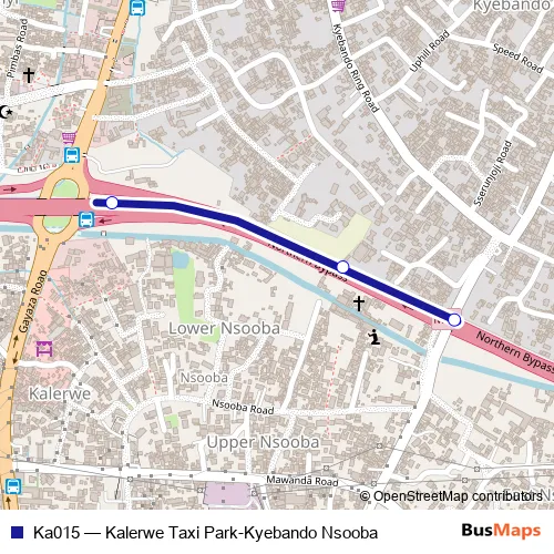 The first stop of the Ka015 bus route is Bweyogerere Stage and the last stop is Nsooba Kyebando Rd Overpass. Ka015 (Kalerwe Taxi Park-Kyebando Nsooba) is operational during everyday.