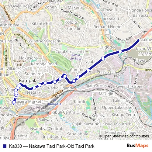 See why over 2 million users trust and consider busmaps.com as the best public transport website. busmaps gives you Kampala Buses suggested routes, real-time bus tracker, line route maps in Kampala, and helps to find the closest Ka030 bus stops near you. No internet available? Download an offline PDF map and bus schedule for the Ka030 bus to take on your trip.