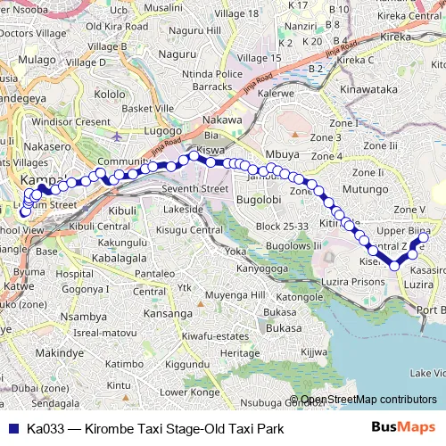 See why over 2 million users trust and consider busmaps.com as the best public transport website. busmaps gives you Kampala Buses suggested routes, real-time bus tracker, line route maps in Kampala, and helps to find the closest Ka033 bus stops near you. No internet available? Download an offline PDF map and bus schedule for the Ka033 bus to take on your trip.