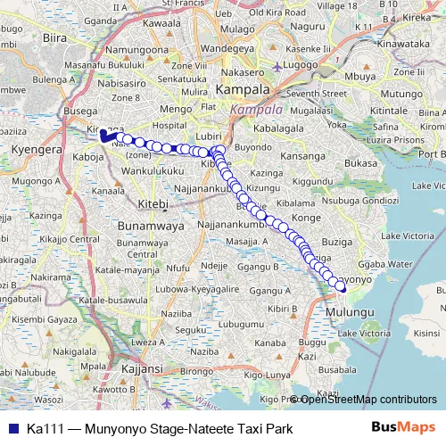 See why over 2 million users trust and consider busmaps.com as the best public transport website. busmaps gives you Kampala Buses suggested routes, real-time bus tracker, line route maps in Kampala, and helps to find the closest Ka111 bus stops near you. No internet available? Download an offline PDF map and bus schedule for the Ka111 bus to take on your trip.
